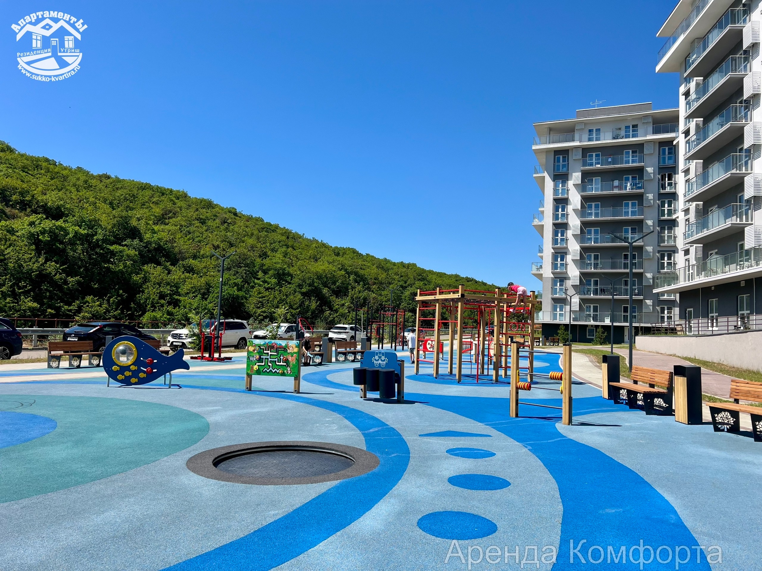 На самой территории комплекса есть всё самое комфортное для Вас и Ваших детей - безопасные дворы, мини детские площадки с мягким покрытием для большой безопасности. Парковка для авто, летний бассейн. Посмотреть путь на море и обзор ЖК от первого лица можно тут